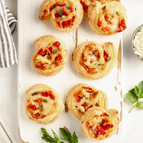 Get ready for a flavor spin with these Caprese Pinwheels, where mozzarella cheese, fresh basil, and cherry tomatoes roll up into puff pastry like they’re auditioning for the next season of "Top Chef."