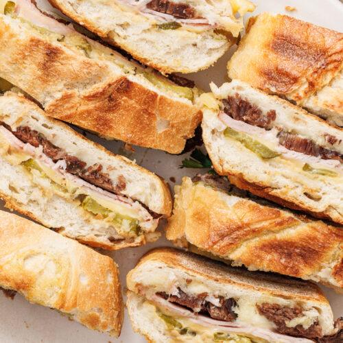 Serve the Cuban sandwiches hot, sliced across for a better presentation.