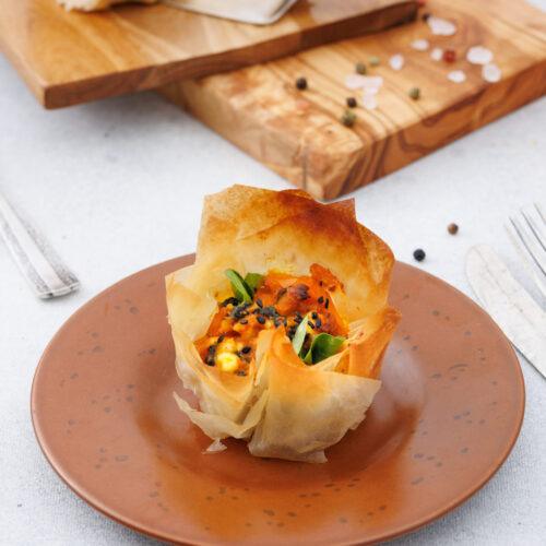 Celebrate fall with Pumpkin Feta Phyllo Cups! A delightful blend of creamy pumpkin, tangy feta, and crispy phyllo, these bites are the perfect seasonal appetizer for any gathering.