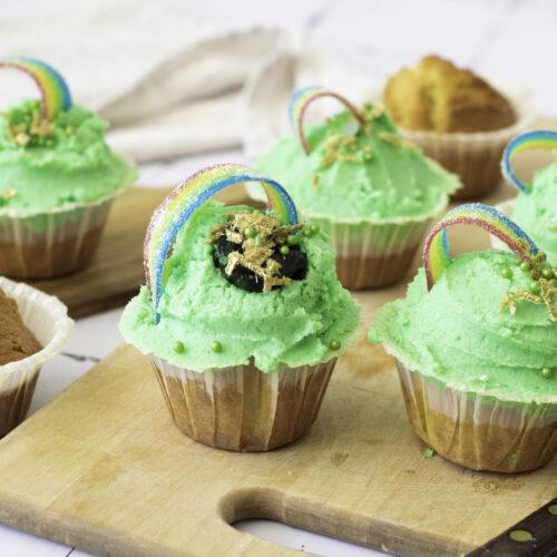 Sprinkle gold flakes and sprinkles at the end of the rainbow. You can also use liquorice candy to resemble a vessel/pot of gold and add sprinkles and/or gold flakes on top.