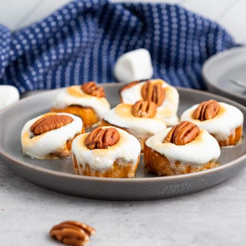 Serve the Maple-Roasted Sweet Potato Slices with Pecans and Marshmallows while still warm and enjoy!